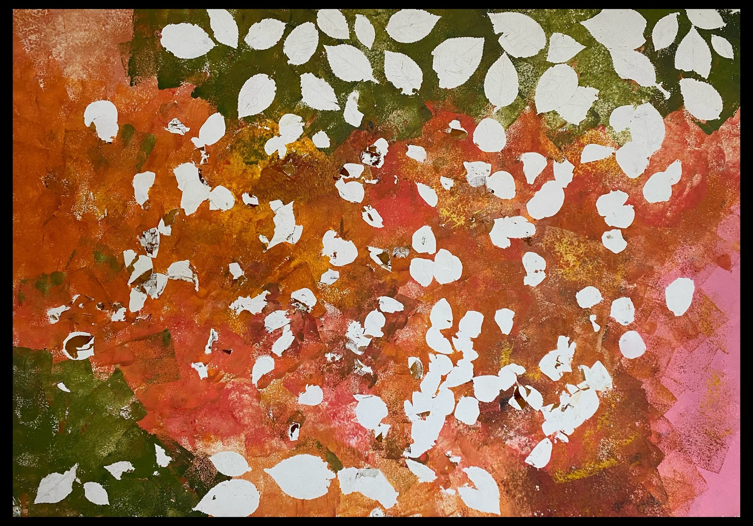 - Acrylic and autumn leaf on Card.