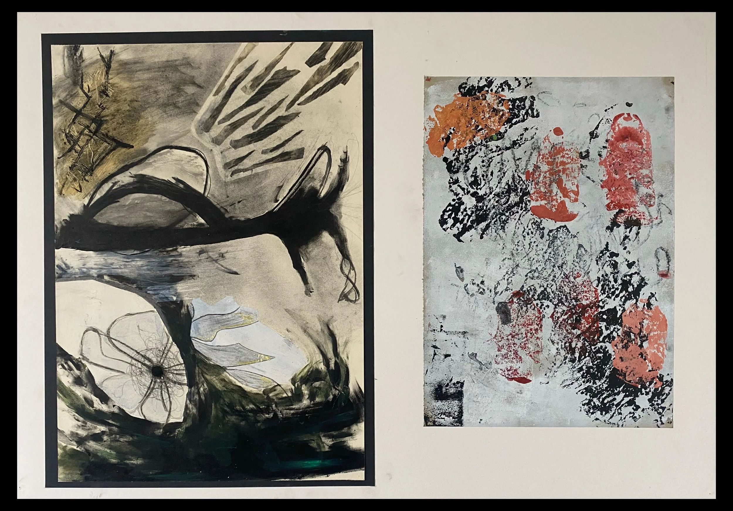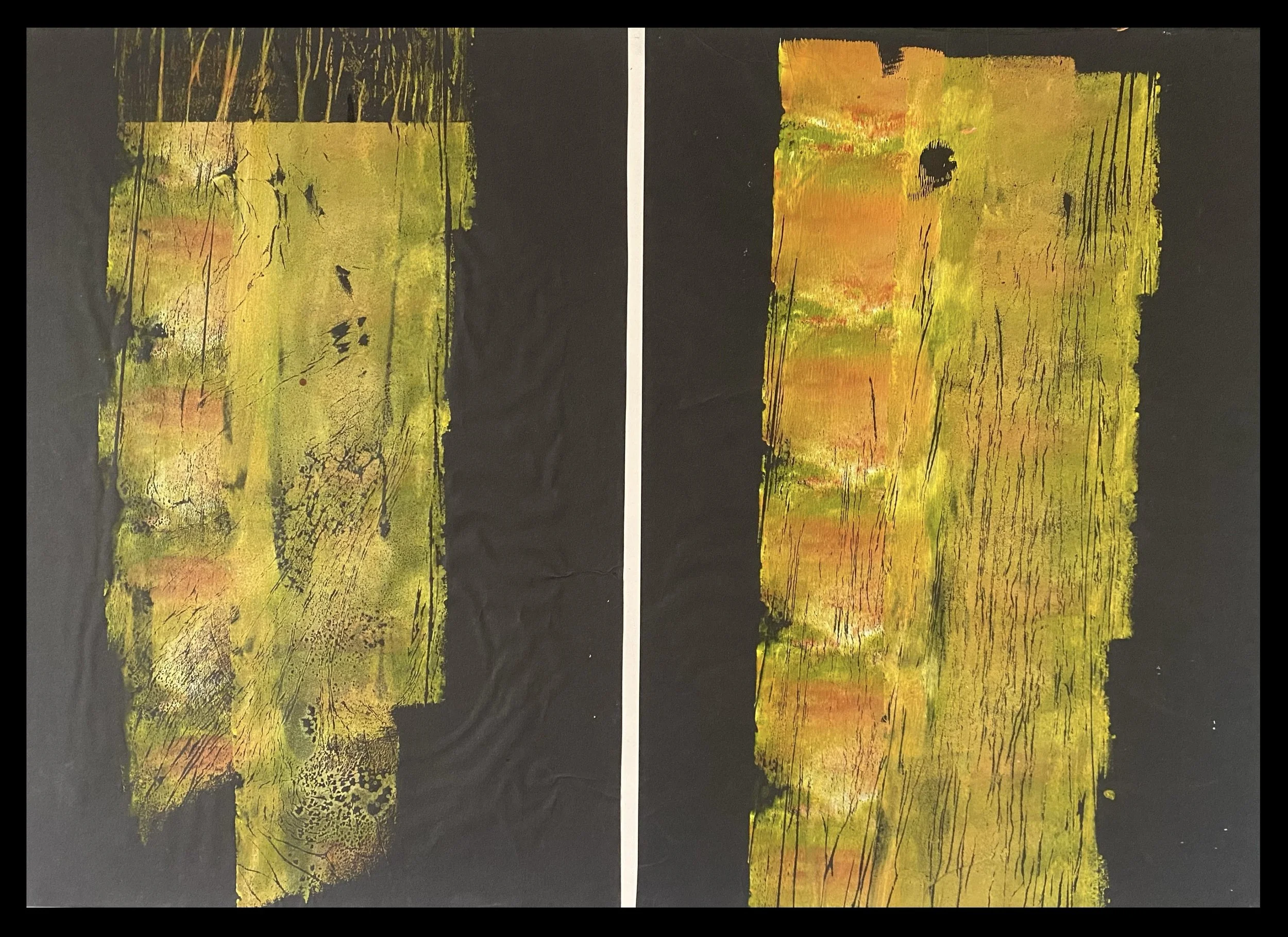 — Two twinned prints from a collection of polythene acrylic press prints I did when working on an environmental project with a botanical theme.